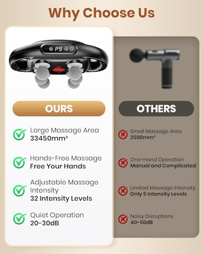 I’ve been using this massage gun for a while now, and I’m really impressed with its performance. The on/off switch doubles as a mode selector, which keeps things simple, and the blue-light digital display is bright, clear, and easy to read. I love the dual-handle design too—it gives great control for whatever part of your body you’re using it on. The device features 6 massaging balls that deliver strong, deep-tissue relief. Combined with 32 adjustable speeds and 9 different modes, it’s incredibly versatile for everything from light relaxation to intense muscle recovery. Very quiet and I can use it while watching TV without disturbing anyone. If you have muscle aches I would absolutely recommend.