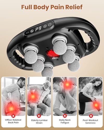 I have been using this 6-head massage gun for a few weeks now and it’s been a great addition to my recovery routine. The 9 intensity levels and modes give plenty of flexibility depending on how sore I am. It’s powerful enough to target deep tissue, especially on my back and shoulders, but gentle enough for arms and neck too.The different attachments are useful for various muscle groups, and the device feels solid and well-built. Battery life is decent, and it’s easy to use right out of the box. Overall, a great product for anyone dealing with muscle pain or just looking to relax after a long day.