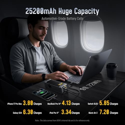 I’ve gone through a lot of power banks claiming to be “laptop capable,” but the AOHI “Black Warrior” is in a league of its own. I needed something that could handle a 100W charge for my laptop while still keeping my phone alive, and this delivers perfectly without overheating.The Pros:Insane Speed: The 100W PD 3.0 port is the real deal. It charges my MacBook just as fast as the wall charger. I tested it with my iPhone 17 Pro Max and it triggers the fast charging immediately.Capacity vs. Size: 25,200mAh is the sweet spot. It’s enough juice to fully charge my laptop once or my phone multiple times over a weekend trip.Airline Friendly: This is the most important feature for me. At 90.72Wh, it sits just under the TSA 100Wh limit, so I’ve had zero issues tossing it in my carry-on bag during flights.Build Quality: It feels premium—dense and solid, not cheap plastic. The “Black Warrior” design looks sleek on a desk.The Display: The LED indicator is actually helpful (not just a gimmick) to see how much power is left at a glance.The Cons:It is hefty. You are carrying a lot of power, so expect some weight in your backpack.It doesn’t come with a wall charger, so make sure you have a high-wattage brick (at least 65W or 100W) to recharge the bank itself quickly, otherwise, it takes a while.Verdict: If you travel with power-hungry devices like a Steam Deck or a high-performance laptop, stop looking and get this. It’s reliable, hits the advertised speeds, and is completely legal to fly with. Highly recommended!