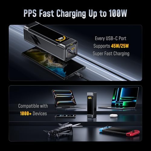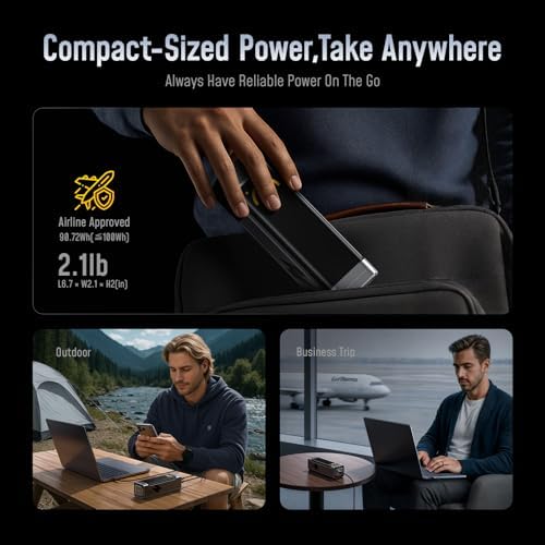 I picked this up about three weeks ago because I needed a single power bank that could handle both my MacBook and phone during long workdays and travel. I’ve been using it daily at home, in coffee shops, and on a recent short flight.In real use, it delivers exactly what it promises. I can charge my MacBook while simultaneously topping up my iPhone and another device without seeing any major drop in speed. The 100W PD output is strong enough to comfortably keep a laptop running, not just slow-charge it. The battery capacity is also well thought out — I usually get around one full MacBook charge plus extra for my phone. It feels solid and well-built, and the display is helpful for checking remaining power.Pros• Strong 100W PD output suitable for laptops• Charges multiple devices at once reliably• Airline-compliant size for carry-on travel• Clear, useful battery displayCons• A bit heavier than phone-only power banks• Industrial design may not appeal to everyoneCompared to smaller 65W power banks I’ve owned, this one replaces carrying two chargers. Overall, it’s ideal for travelers, remote workers, and anyone who wants one serious power bank instead of several smaller ones.