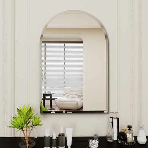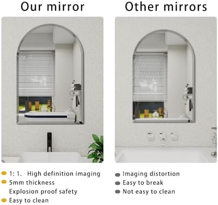About this item 1. large arched mirror,Elevate your home decor with this stylish arched frameless mirror.frameless mirrors for bathroom, Perfect for the bathroom vanity, it also adds a touch of sophistication to living rooms, bedrooms, entryways, mantels, and hallways.