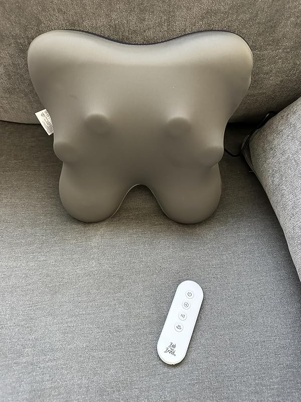 Update:Customer service was excellent so that made the experience of product much better!Things to consider:Shape: works if lying flat on back because pillow is only useful if you have counter pressure with body weight.Button control: the on/off button is located in back of pillow so sometimes it will accidentally be pressed and turn off.Sound: there is a loud “beep” when remote controls are used: turn on/off, to change massage direction, intensity, or for the heat setting- located on pillow next to ear I don’t think there is a way to turn the volume completely off- if there is, I haven’t found it.Remote: it’s convenient to change setting but there is no light/indication on the remote itself to show if heat is on, you have to look at the pillow itself to see if the red light is illuminating.