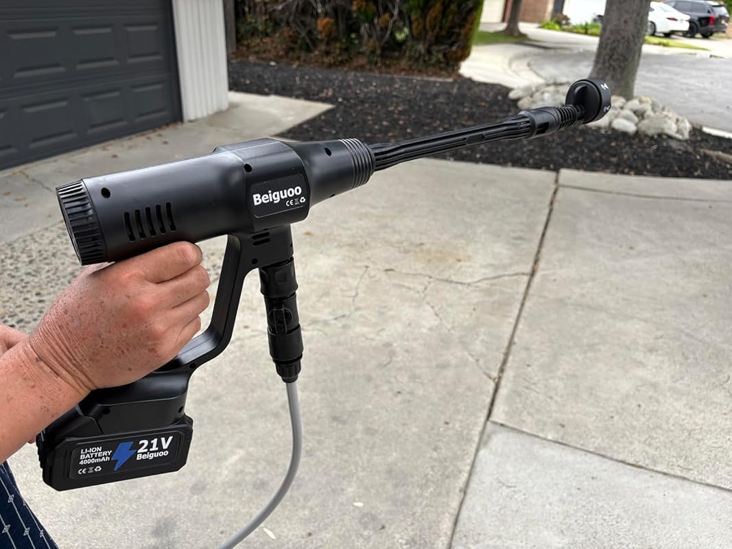 Beiguoo Cordless strain washer: portable excessive stress washing machine, no want for wire connection, just installation the battery and use it. Prepared with a transportable bag, you can take it anywhere, fast easy mud and dust in any region, improve your cleansing performance 1450 PSI pressure washer: 1450PSI provides powerful stress washing for dirty floors, vehicle cleaning and greater. Water pressure 3 speeds adjustable, you may use the primary velocity to water vegetation, the third velocity to smooth grimy areas, bendy use of water pressure, convey convenience for your existence 4000mAH Battery: