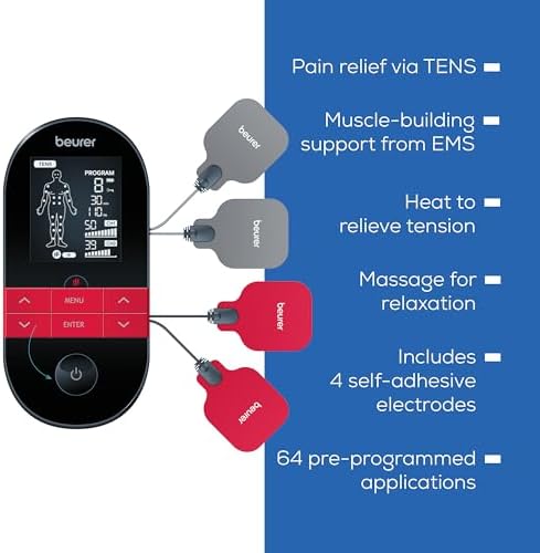 Beurer EM59 Digital 3-in-1 TENS Unit, EMS & Heat Therapy for Pain Relief &amp
