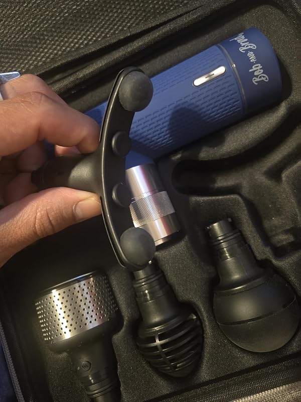 Ok this massage gun is insane. At first I was real concerned about the price point. I was looking at the cheapest guns to buy by Bob and Brad looking at reviews and comparing pricing. The reviews for the cheaper guns are just as consistent as the more expensive models which told me that all of their products are solid. Also the price difference between them was small 10 dollar increases. Well I already have a massager gun and I wanted something more powerful so I went all out and bought this one. Holy smokes it’s not just powerful it’s almost to powerful and I can handle the deep tissue massages. This was fantastic in my book cause you can ease back on the gun and it slows the concussions against your body. This gun is built! I mean really built out of Good material heavy duty metal. The heads of the gun twist in and lock in place. The heads are soft rubber and hard rubbers not that cheap styrofoam that some guns use. The curved attachment covers a lot of area at once and helps relieve the muscle faster. I have not even got to the highest speed yet because you don’t need it which is crazy to me because usually it’s the opposite you don’t need the low speeds. The size is small enough for travel. The only con I would say is the heat and cold head it is a little gimmicky im a truck driver so I still need it for not having the at home covenants of a heating pad or a bag of ice. But it neither gets cold enough or hot enough and can not cover large areas to make much of a impact. If I were them I would just get rid of that all together and just include a gel pack that you can hear in a microwave or freezer or cool in a fridge. They could reduce the cost of the device and sell many more. Over sli this product is very solid and Iam very happy with the purchase. If you have super aches pains and don’t know how to solve them. I would choose Bob and Brad Products