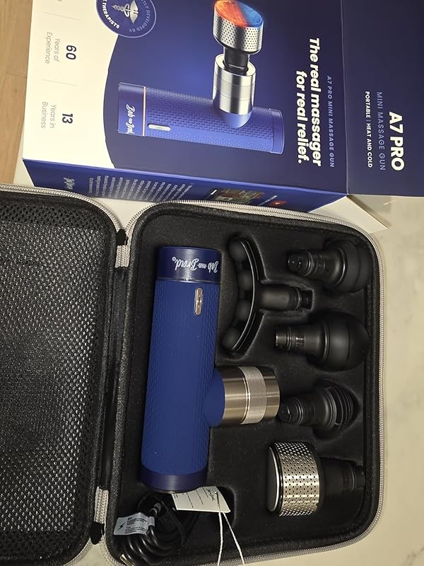 I’ve been using the Bob and Brad D6 for a while now and love it, but the A7 Pro is hands down the best massage gun I’ve found for on-the-go use or at the office. It beats the other more wildly expensive massage tool. It’s compact but still surprisingly powerful. I throw it in my backpack and bring it to work—super easy to carry with the case it comes in.What really sets it apart is the hot and cold therapy feature. I didn’t think I’d use it much at first, but the heat setting is clutch for stiff muscles, and the cold helps big time with swelling after workouts. It heats and cools fast too, which is nice when you don’t have all day.Despite being a mini massage gun, it doesn’t feel weak at all. The 11mm amplitude gives it legit depth and the motor holds up well even when I dig into tight spots. I use it on my legs after runs and it doesn’t stall or bog down.The grip is solid, doesn’t slip, and it actually feels high-end. You can tell they didn’t cheap out on materials. Also, the LED light thing is cooler than I expected—helps gauge the pressure you’re using and makes it feel kind of futuristic haha.The different massage heads are a nice touch too. I mainly use the arc one for my calves and arms and it gets the job done.Honestly, it’s one of those things you don’t realize how handy it is til you have it. For something so portable, it delivers way more than I thought it would.