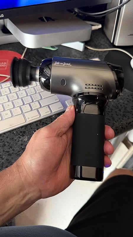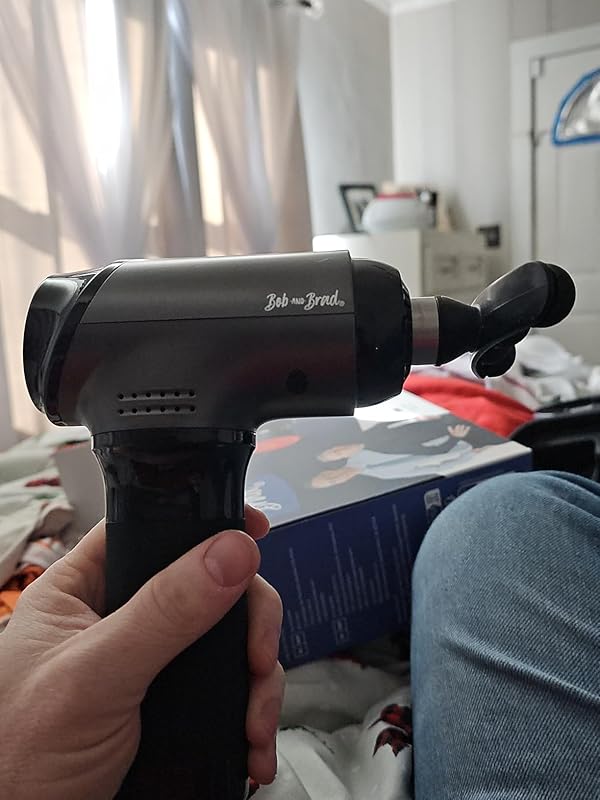 This is the 2nd Bob and Brad massage gun. First one , the battery died and would not charge after approx 9 months. Bought the best recommended on their website. Bought it thru Amazon and did not use it for a couple of months and by the time I decided it was not for me, it was past the time for Amazon to take it back. Note to self, stop buying thru Amazon, their return policy is quite pathetic. This new gun is plasticy, very noisy and hurts the hand holding the gun. Too much vibration on the handle. Not a problem with the other gun. Looks cheap and feels cheap, rattles and hurts my flesh often enough for me to turn it off and walk away. Very disappointed in the quality of this , my husband is very proficient in using this gun on my back and shoulders. He hates to use it as it hurts his hand, rattling noise is awful. Use less power, you say. I use it at mid speed, anything lower is ineffectual, higher and it leaves bruises due to excessive vibration, the whole gun rattles and hinders my healing. If I could give it a zero , I would