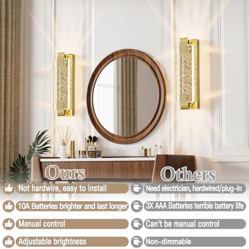 Battery operated sconce is easy to install, non-hardwired dimmable wall sconces are suitable for bedrooms, living rooms, bathrooms, corridors.