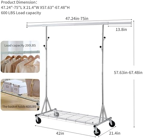 Clothes Rack Heavy Duty – 600LBS Rolling Clothes Racks