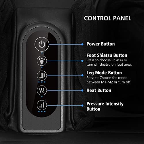 If you are looking for a great calf massager, look no further! The shiatsu foot massager and calf massager both function very well and feels very high quality. The heating function heats the massager up quickly and feels very nice on your feet. The pressure of the calf massager is perfect, but you can change the level of pressure intensity very easily on the control panel if it is too much. Going along with that, the control panel is very easy to use, so that you can customize the massage you want. Finally, when not in use, the massager folds into an ottoman and looks so nice!