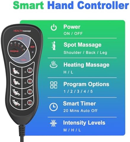 • Full Body Vibration Massage – Targets shoulders, back, waist, and legs.