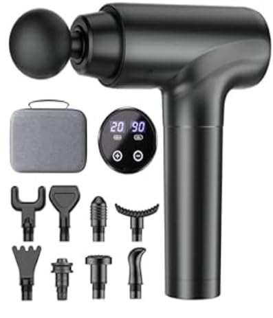 I’ve been using this massage gun for a few weeks and I love it! It’s powerful, quiet, and very easy to use. The battery lasts a long time and the display is clear and helpful.I really like that it comes with many different heads for different muscle groups. It helps me relax after workouts or a long day.