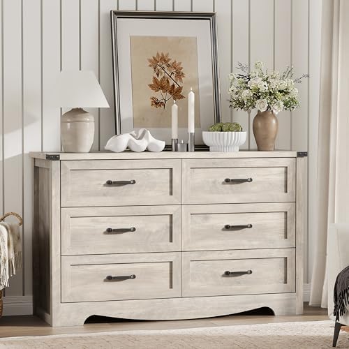 Dresser for Bedroom with 6 Drawers, 48″ Wide Wood Chest of Drawers with Deep Drawers