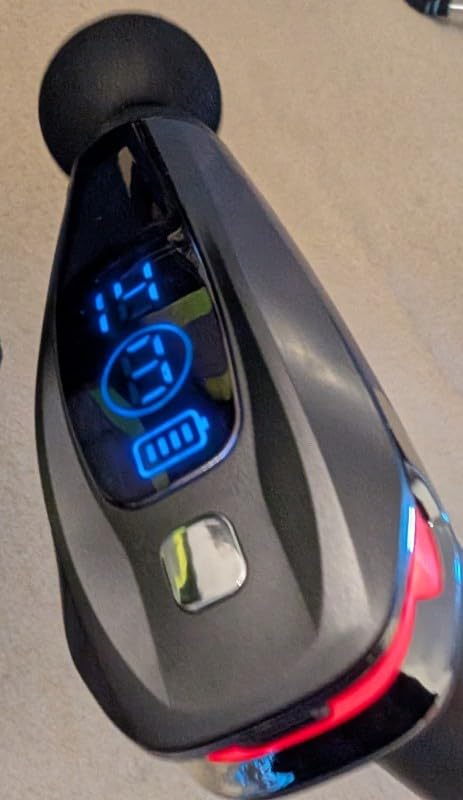 I was pleasantly surprised by how easily I could reach my back with the EXELLEON Massage Gun Deep Tissue Percussion Massager. The long handle is comfortable to hold and makes it simple to apply the right amount of pressure to both hard-to-reach and easy-to-reach areas. It’s a bit larger than other massage guns I’ve used, but that extra size is what allows for better reach and control. The multiple speed settings are clearly shown on the top display, and overall the device feels strong, well-made, and durable.