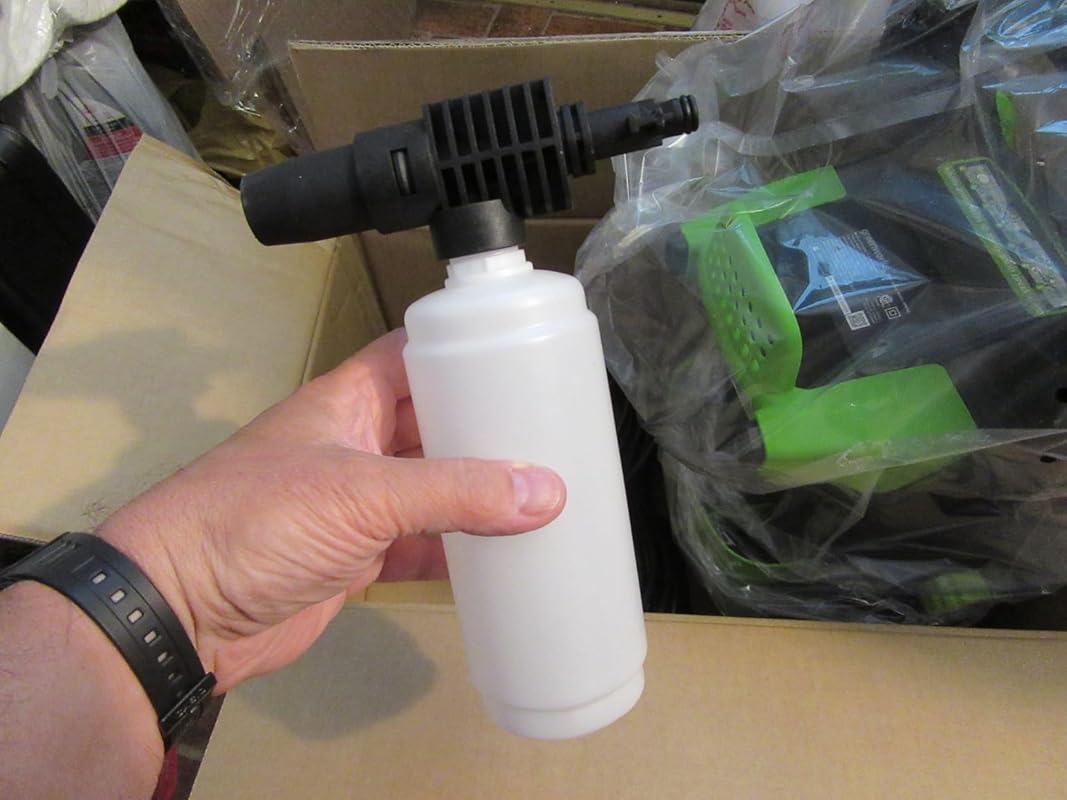 Purchased the Greenworks model 3000 (psi) pressure washer on sale, and used it for two days outside surface cleaning in Aug 2023; liking the Greenworks model 3000 a lot. A quiet electric machine – online videos don’t show how quiet it is. But online videos do show the Greenworks max psi is well under 3000 psi, eg the 15″ Greenworks surface cleaner measured at 1000 psi (and the tips higher than 1000 psi), so the pwasher/surface cleaner should be safe for pavers. Packaged with wheels mounted; pwasher quickly assembled, no assembly issues, similar in size to my old gas 2600 psi Craftsman. Like its green appearance and its sturdy frame/body steel like my old gas pwashers. Its box arrived mostly pristine/undamaged, and parts looked sparkly new, unused – i see some one-star reviewers show otherwise.So thanks to those web videographers who measured the Greenworks psi pressures/gpm using pressure meters inline with gun and 5-gallon buckets to inform us of what each pwasher tip and surface cleaner psi and gallons per minute actually are. Greenworks should have easily provided that info, including their pump nomenclatures, so we as consumers can make a better choice, ie may not have needed the 3000 psi model if the pumps and internal electronics are the same for lower rated psi Greenworks models. For example, if a lower rated model has a pump to be avoided, then we can choose a better model.Used the Greenworks brand 15″ surface cleaner on our wide (2-car) concrete driveway, concrete sidewalk, and 5′ wide x 40 ft paver walkway, and delighted with the cleaning results. Even though I owned Craftsman gas pwashers for decades, did not know how low a psi pressure can be to clean concrete, so 1000 psi for concrete using the 15″ diameter surface cleaner. (Using the surface cleaner is a must if you want to feel like a human when you are done, a great time saver). So the math falls to 500psi for each of the two surface cleaner rotating tips that clean concrete and pavers.Did not use the onboard soap reservoir yet- used a bucket of very diluted Zep concrete cleaner and just spilled it on and used a push broom. Phoned Greenworks, because neither their supplied instruction manual nor their online videos recommend a detergent, and their (annoyingly small print) instruction manual stated no acidic nor base detergents (page 9) should be used; that just leaves water as the detergent per their written directions. But the Greenworks responder suggested Simple Green as a guess for the soap dispenser Aug 2023. Purchased the Greenworks addon soap applicator on sale, but have yet to use it. fyi, entertaining to see the videos repeatedly miss which detergent to use; the video host only says “here is the Greenworks detergent reservoir”, and skips to another pwasher part; an SNL moment.Did not find that the few second delay after pulling the gun/trigger or after elec powering on a nuisance as many reviewers suggested. An extension wand is required for the surface cleaner, because the supplied gun/wand are too short for using the 15″ diameter surface cleaner. (Can purchase surface cleaner including an extension wand)No electric problem from a lamp post outlet 40+ ft from house with 12-guage underground wire on a 15 amp circuit ( I have not tried using an extension elec cord yet). Careful to keep garden hose and electric power cord and surface water separate. Initially, blow the surfaces.Rinsed the surface cleaner after each day of use; and relieved the gun pressure each time the washer was powered off to spend a little time rinsing a completed surface section. Smooth sailing so far.Btw, Trex does not recommend use of a pwasher, nor does Bob Villa recommend a pwasher on a house exterior – I still use the extension 22 ft aluminum threaded pole with replaceable brush and a bucket of very diluted Palmolive liquid dish detergent on vinyl siding to prevent my clothes from getting bleached by the stronger house exterior cleaning products, and this Palmolive solution is safe for Trex decks.More than a week later, amazed how good looking the driveway and sidewalks appear, wow! The age of the 36 ft concrete sidewalk is 42 years, the 50 ft driveway 25 years, and the 40 ft paver walkway 9 years. (Also cleaned a small concrete pad at our garage people door, and a nearby cluster mailbox concrete/aggregate pad for 16 neighbors on our cul-de-sac.)And yes, the Greenworks plastic holster for the pwasher gun is weak when in the upright/storage position; ok when in horizontal (working) position, but would prefer the decades old circular short plastic holding tube – reviewers are currently suggesting a bungee cord to bolster the holster; the reviewer used 3 holster bolts shown in his photos to anchor the gun whereas the model 3000 I received Aug 2023 only has two gun holster bolts. Also not a fan of the pressure hose holder which has a supplied bungee – our old gas Craftsman had a perfect hose holder on a strong plastic reel.But goodbye to gas pwashers! (applause). Hope this 3000 model will last; one-star reviewers do show some caution, and hope in general elec pwashers improve.Update 3/30/2025 Used Greenworks power washer again for the driveway. Pwashed each driveway section with Simple Green All Purpose cleaner – poured a very diluted solution by bucket, brushed it on, and used the surface cleaner. Had no problems using the Greenworks 3000 pwasher so far. Used a second hose for quick rinsing section by section. So our Greenworks pwasher is still alive after 3 years, and we keep it stored in our garage near our house wall so it’s never below freezing for long. Driveway today looks amazing, and it hasn’t been in dire need for cleaning for 2 years including today – so we could pass another year except for some mold on perimeter.. Sidewalk and paver walkway easily completed – nice! So Simple Green All Purpose Cleaner by spilled on bucket is good enough.