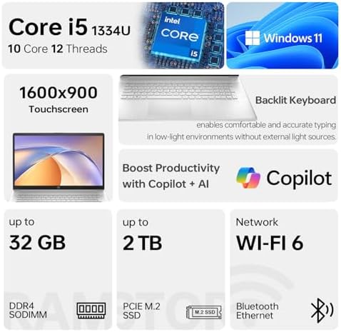 HP Essential 2025 Business Laptop, 17.3″ HD+ Touchscreen, Intel Core i5-1334U Processor