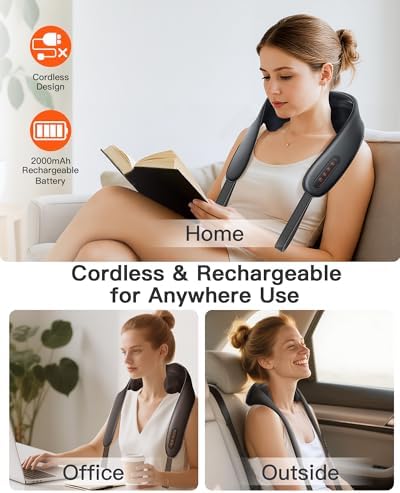 I’m really glad I bought this cordless neck and shoulder massager. It helps a lot to relieve my neck pain, especially after long workdays. The shiatsu kneading feels just like a real massage, and the heat feature adds an extra layer of relaxation that makes a huge difference.I also love that it’s cordless, so I can use it anywhere without getting tangled in wires. The adjustable speeds and modes let me choose exactly the type of massage I need, whether I want something gentle or a deeper, more intense kneading. It works great not only on my neck, but also on my shoulders and upper back.Overall, it’s a great device for pain relief and everyday relaxation. Highly recommend it for anyone dealing with neck or shoulder tension!