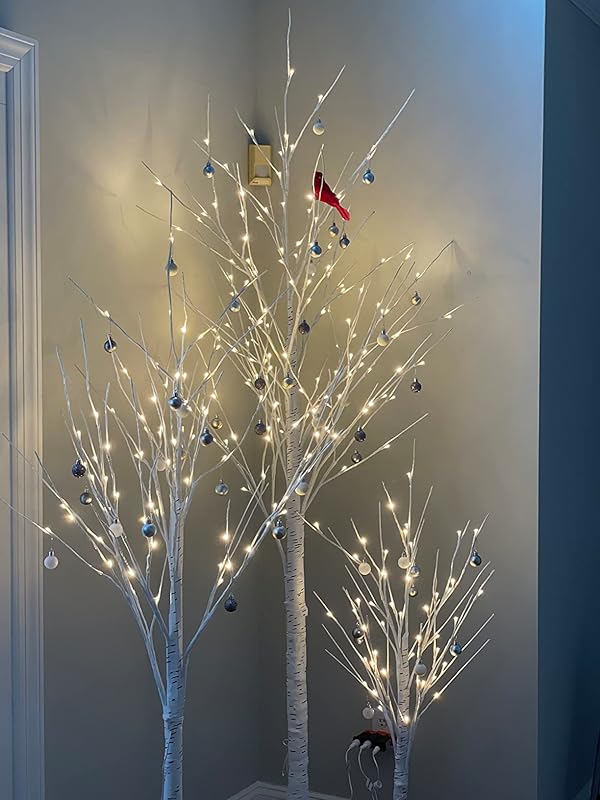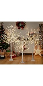 These light up birch tree’s are a beautiful addition to your holiday home. They look great as décor for all winter long or to add to a Christmas or holiday display. They are very sturdy, are easy to put together and store well. They are a great value for the money as other tree’s of the same size retail for a bit higher in stores; and are hard to come by in a complete set like this. The lights on the trees have a beautiful warm but not yellow glow. To store the trees you can push the branches in and tie them with any string. The trees also come in different complementary heights so they look great next to each other. Timer function can be achieved with a smart plug. To finish the look I use the artificial snow used for Christmas Village displays to cover the bases.Overall:+Quality Material+Nice Color Temperature+Easy to Assemble