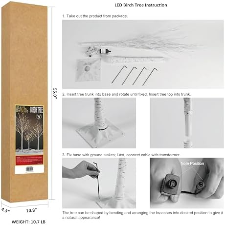 This set of Lightshare LED Birch Tree comes with 4FT,6FT and 8FT, plug-in to use. It brings nature’s beauty into your home. The warm white LED light and natural white stems combine for the perfect accent in your yard, front door, or living room for a year round decor.
