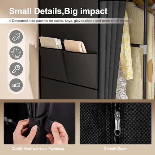 Your sweaters will hang wrinkle-free on dedicated rods, seasonal accessories tuck neatly into shelves, and daily essentials stay within arm’s reach in side pockets. Experience the satisfaction of walking into a perfectly organized room every day – where every shirt, shoe, and scarf has its designated place. Upgrade your storage game today and maintain lasting tidiness effortlessly!
