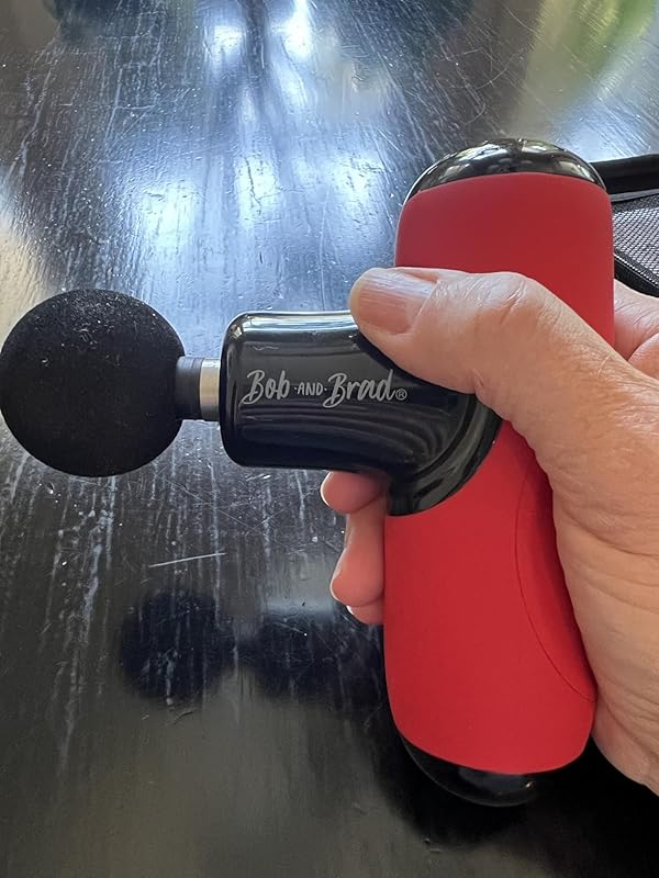 I have the tooth shaped back massager by Bob and Brad and really love the quality of it and function. So I decided to take a chance on this little massage gun because I trusted the quality of Bob and Brad. It was also $80 versus $200+ of some of the other brands. I use this almost every night and it works so well. It has a little case and various different attachments. I like the ball or the more pointed one. I do like the hot/cold, but with it being a flat head, it does not feel as effective. Highly Recommend this massage gun. GREAT quality, works well, helps with my muscle knots/pain.