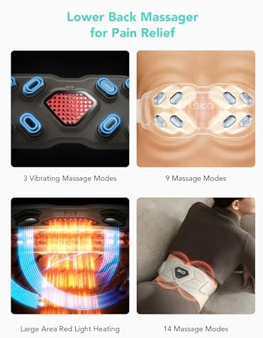 𝗥𝗲𝗱 𝗗𝗼𝘁 𝗔𝘄𝗮𝗿𝗱 𝗕𝗮𝗰𝗸 𝗠𝗮𝘀𝘀𝗮𝗴𝗲𝗿 – Find soothing relief from everyday back discomfort with the SKG Lower Back Massager for Pain Relief, designed to combine deep tissue vibration with advanced infrared heating therapy. This adjustable cordless massager wraps comfortably around your lower back, delivering targeted warmth and massage to help relax tight muscles, reduce stiffness, and improve circulation. The gentle yet effective heat penetrates deeply to ease tension, making it ideal for long workdays, travel fatigue, or post-workout recovery.