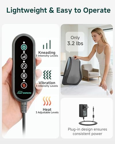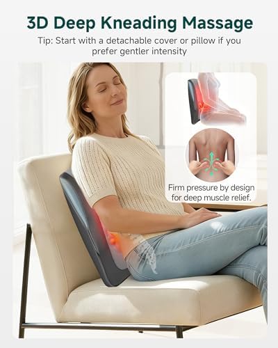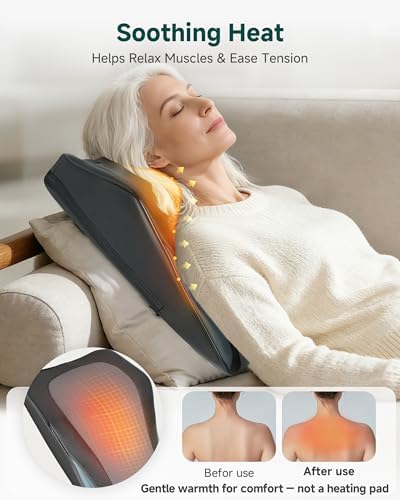 Oddly enough, I don’t like using these types of massagers on my back. I find them to be uncomfortable. What I did find that worked for me was sitting in a recliner chair and putting this massager high on the back and using it on the back of my neck and head. I didn’t notice much heat when using that feature, and I didn’t care for the vibration. The massagers are fairly hard, but worked well for my neck.Snailax Back Massager with Heat, Shiatsu, Vibration, 3D Kneading Massage Pillow, Corded, Neck Massager for Neck Pain, Massager for Lower Back, Neck, Leg, Gifts for Women, Men