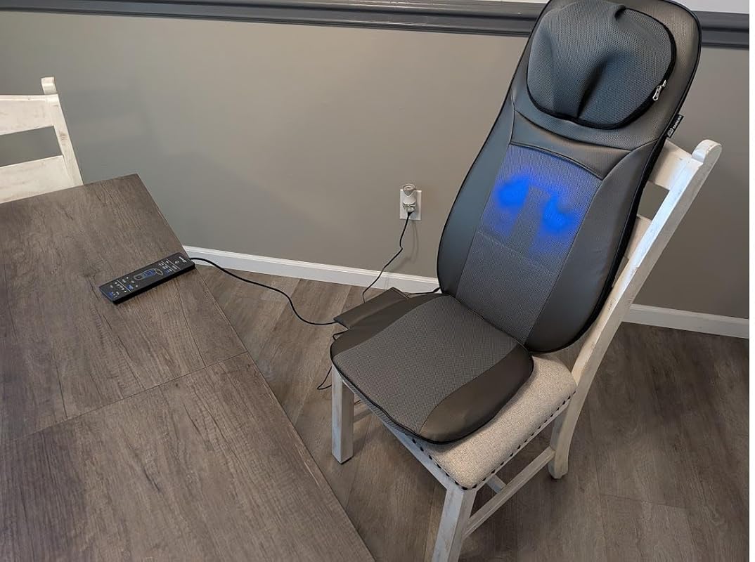 I have been using this massage product for about 2 weeks now and purchased it on my own accord and was not incentivized in any way. There are a lot of positives to this product and perhaps it will work for you but I believe I will be returning this product and will replace it with a different model or with a product from a different manufacturer.Pros:• It’s well made• Controls are straightforward and easy to useCons (in my experience using):• The proportions just don’t work for me. I have tried adjusting and repositioning this massage chair device numerous times and have tried attaching it to a number of different chairs and sofas and have also tried just lying on it flat but the proportions just don’t work for me. I am a 5′ ft 11″ male and weigh around 150 lbs. which I would consider to be a fairly standard height / weight (well, perhaps I’m a bit slim/trim for your standard American but that’s a different issue lol). I cannot get the main moving kneading back shiatsu massagers to reach the highest area of my upper back where I most desperately need massage, in between my shoulder blades without the lower back massage range then being too high. It is nice that the neck massage area is vertically adjustable but the range of motion for the main back massage area is not long enough for me and the only way I can get the massager to reach my upper back where I need it to be is by raising the entire unit up but if I raise it up as high as I need it to be then I cannot sit on the cushion as it is no longer lying flat on the top of the chair and is then an angle and I don’t want to sit on it and effectively bend it when it has electronic components inside. And I have issues attaching it to a chair which will be in the next bullet.• The straps to attach it to a chair need to be repositioned or there needs to be an additional third, lower strap. I need to be able to attach the very bottom of the unit to the back of a chair but the lower of the two straps is not low enough and thus no matter what chair I use the bottom of the back panel board keeps sliding forward and it’s just been nearly impossible to use this on any chair or sofa I have tried without there being issues. The only decent experience I get is when I lie it flat on a couch or on the floor and lie myself flat on top of it which is okay but I would really like to be able to use this while sitting upright in a chair.• The lower seat vibration massage area isn’t strong enough. It’s probably a strong as massaging components are capable of being but it just isn’t enough for me. And it would be more noticeable perhaps if they are were pre-programmed massage patterns available and built in (such as pulsating, throbbing, etc.) instead of just solid on or off.My final two cons are for missing features I wish this product had and are not the fault of the manufacturer. It’s likely these features I desire do not exist at all from any manufacturer and/or don’t exist in a product of this price range.• I really wish that there was both kneading shiatsu/rolling massage AND full body vibration massage available in the same unit. Perhaps that’s not possible from a construction standpoint considering the rolling/kneading massage components are constantly moving and having vibration massage units along the same areas as the moving kneading massage parts might not work well together or even feasibly be possible. I don’t see why the kneading massage heads themselves though couldn’t have vibration motors built with inside of them, almost something like the classic Panasonic “Magic Wand” vibrator except the massage head is on a track and is moving/kneading/rolling. Perhaps I will just have to buy a second unit that is massage only and then use one after the other but while the kneading shiatsu massage that this product does provide does feel very nice (despite not quite hitting the right areas of my upper and lower back that I need it to) I still just feel like I didn’t get the whole experience that I really require when I’m done using this product because I really need some sort of pulsating massaging sensation applied in these areas as well.•Lack of “chopping” setting. Again this is not the fault of the manufacturer and this may not exist on any similar product in this price range but my whole basis for comparison in using this machine is from remembering wonderful experiences I have had in full stand-alone massage chairs which I’m sure they purchased for thousands of dollars more but I just think they remember there being a rapid tapping or “chopping” type massage available as well (sorry, I’m not a massage therapist and have no clue what the actual term for this type of massage is lol). The rolling and needing experience is very nice but I need some sort of strong vibration or tapping or chopping feature in the same areas and just do not feel thoroughly refreshed and relax after using this product without experiencing this type of sensation.Overall it’s a nice product and I can understand if it is not possible at all or even just not possible at this price range to have additional vibration and chopping massage style techniques built into this product but even with that aside I wish they would add a third/additional chair attachment strap to this model and I wish the proportions / range of the lower moving back area were slightly adjusted. I believe I am going to purchase a similar product from a different manufacturer to see how well it compares.