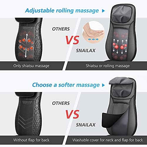 Snailax shiatsu Neck & Back Massager with Heat, Full Back Kneading Shiatsu or Rolling Massage, Massage Chair pad with Height Adjustment, Back Massager for Neck and Shoulder : Health & Household