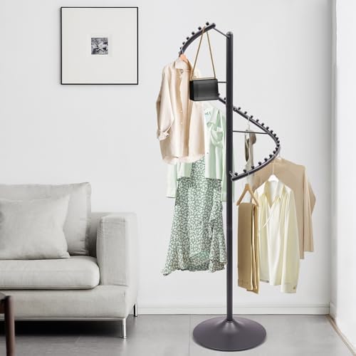 Engineered with a robust, all-metal construction, this rack is built for heavy-duty, daily use. The sleek, black finish provides a modern and professional backdrop that makes colors pop and draws the eye directly to your merchandise or favorite outfits. The innovative Spiral Rotating Clothing Rack features a smooth 360-degree rotating mechanism, allowing customers or users to effortlessly browse the entire inventory without moving an inch. This interactive experience encourages browsing, increases engagement, and can significantly boost sales and outfit planning by making every item easily accessible.