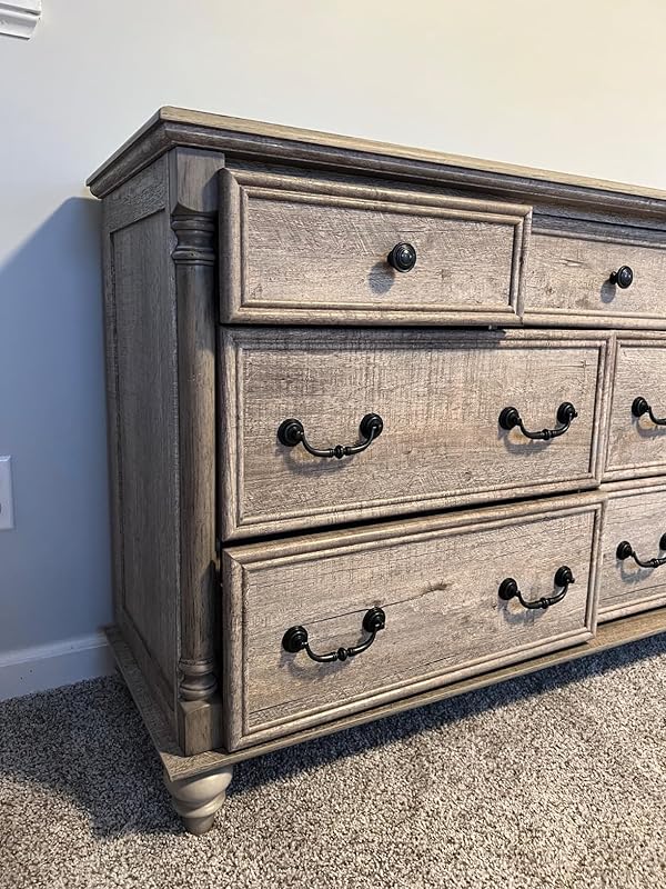 Equipped with seven roomy drawers, this dresser provides ample space for clothing, linens, and everyday essentials. Each drawer is designed with smooth-glide tracks, ensuring easy access and effortless organization.